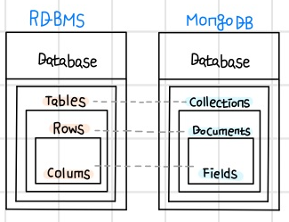 MongoDB는 Documnet 기반 데이터베이스이며, Database > Collection > Document > Field 계층으로 이루어져있다. (계층은 RDBMS와 유사)