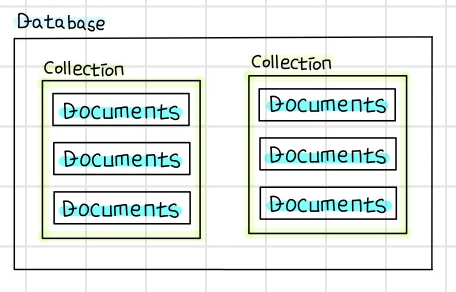 Database 공간에 여러 개의 Collection이 존재하고, 그 안에는 Document들로 구성되어있다.