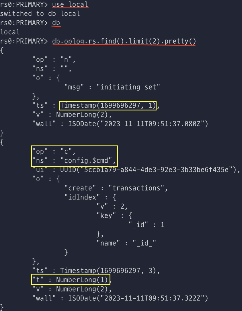 오피로그를 상세하게 확인하려면 local로 스위치하고, oplog에 관련된 사이즈를 확인하고 oplog데이터를 확인해본다.