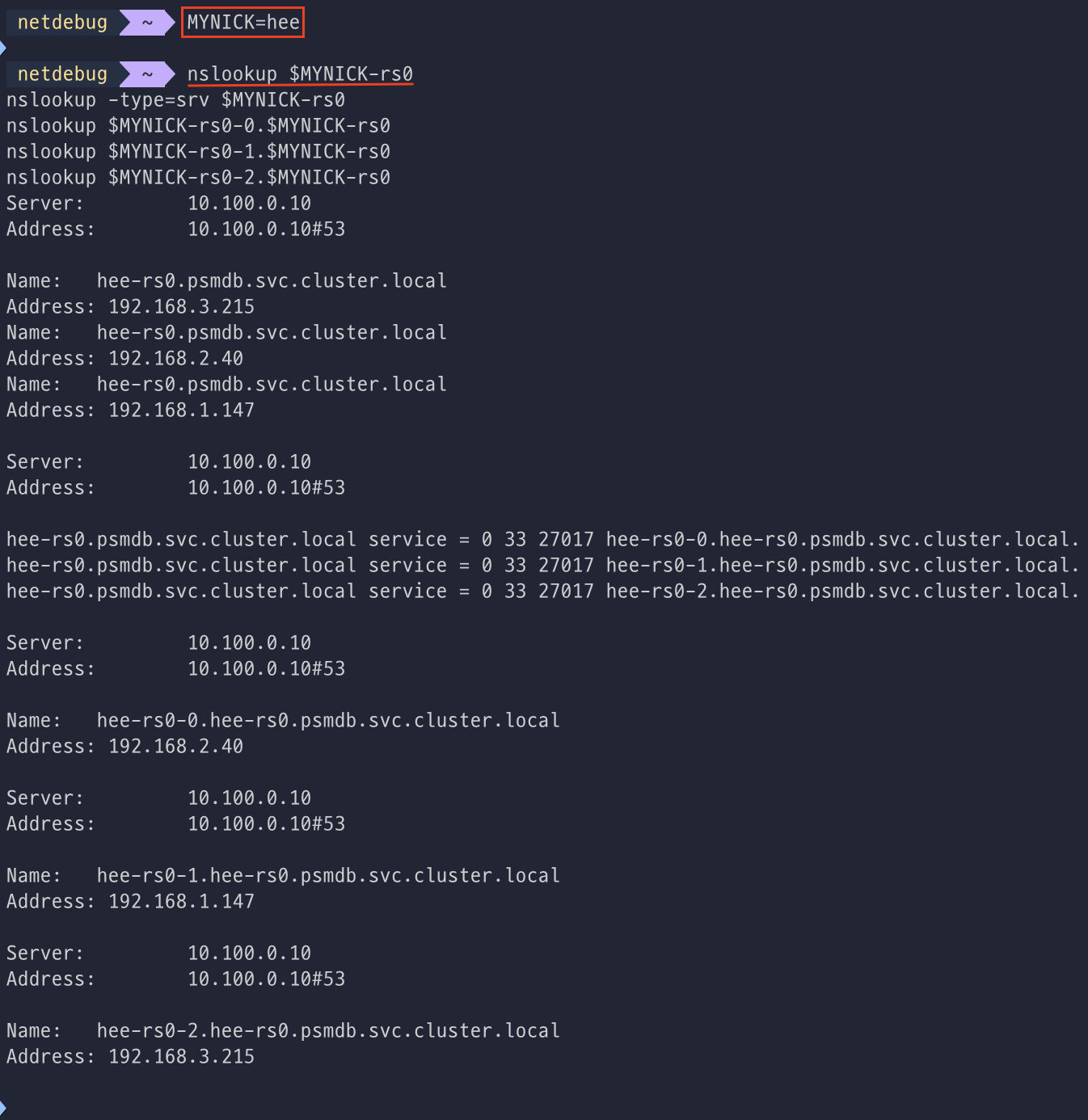 사용할 이름을 정의해주고, 확인하면 3개의 Pod IP를 확인할 수 있다.