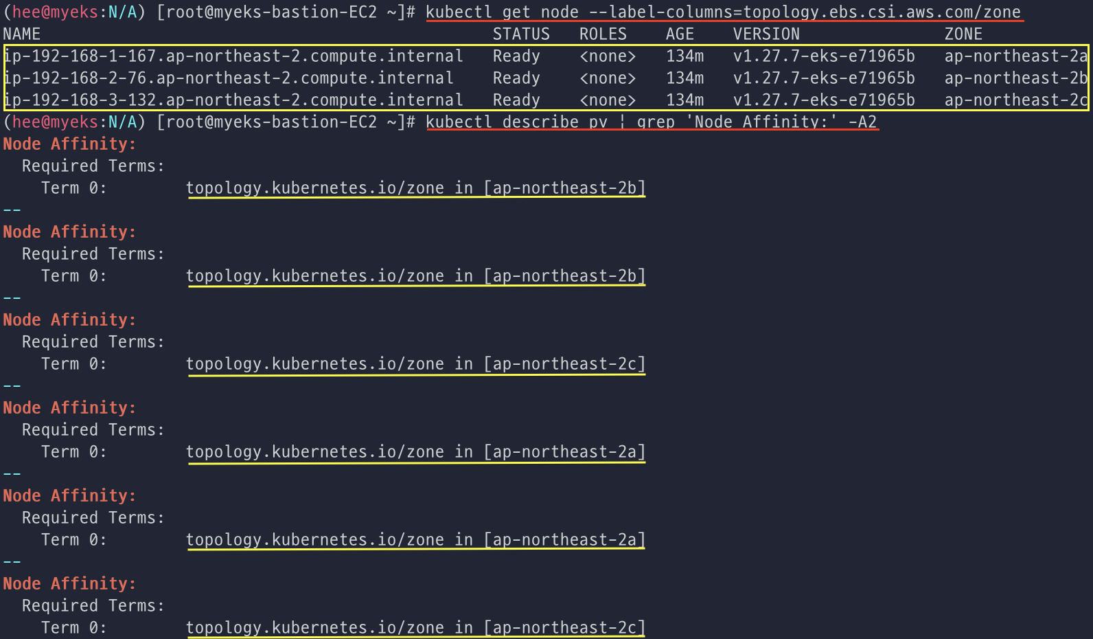 그리고 pv를 describe로 보면 Node Affinity에도 정보가 들어간 것을 볼 수 있다.