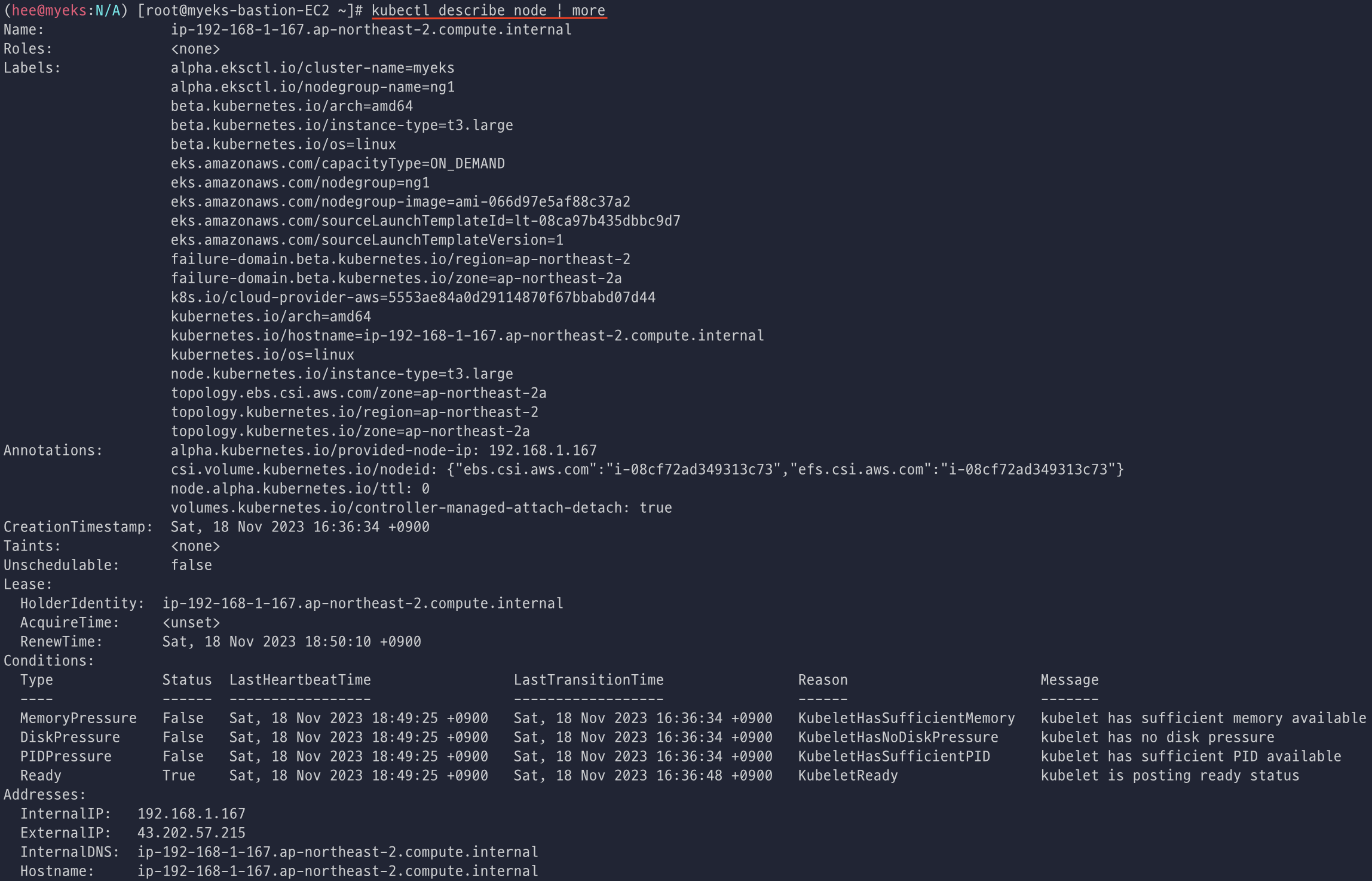 노드를 describe로 확인하니 Labels 값에 topology~로 시작하는 것도 확인 할 수 있다.