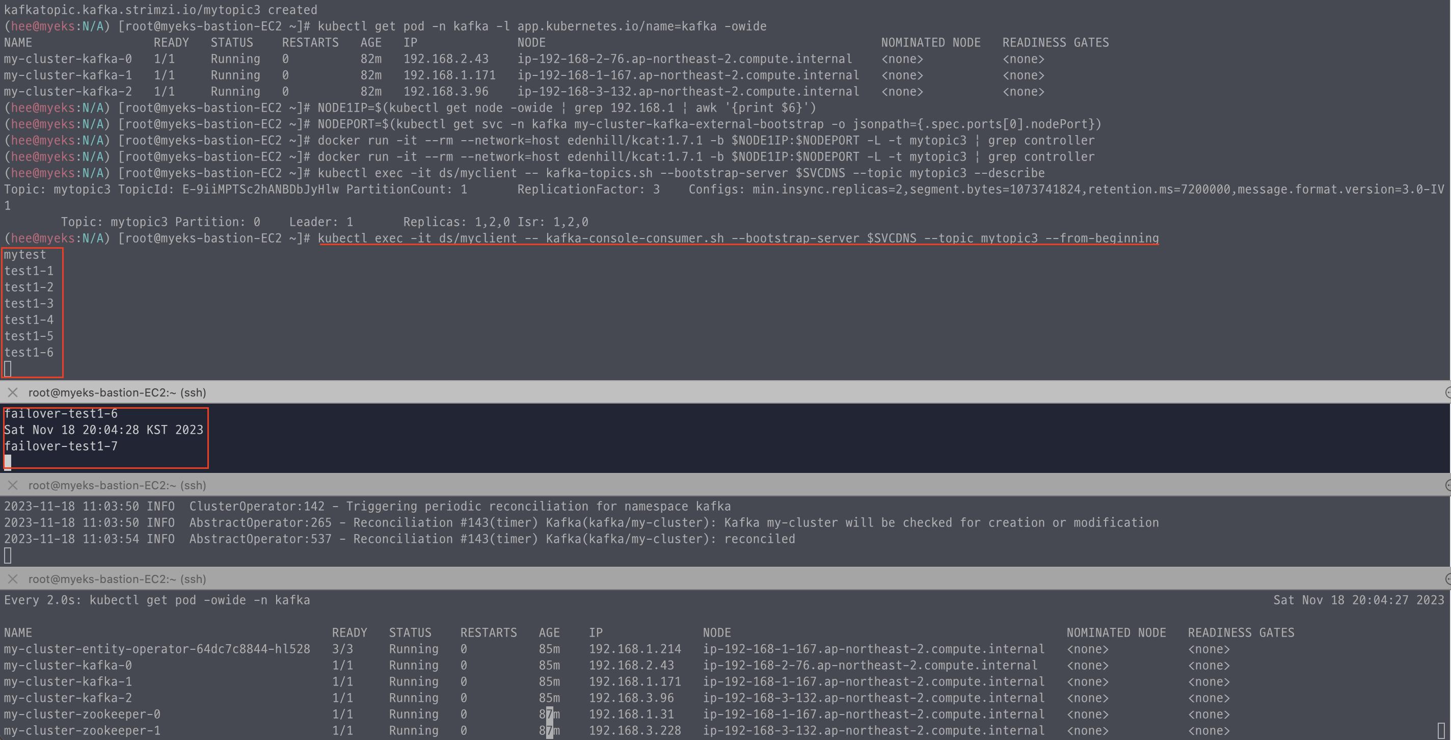 강제로 컨트롤러 브로커 파드 삭제하여도 메시지를 정상적으로 잘 받는지 확인하니, 메시지는 잘 받는 것을 확인하였다.