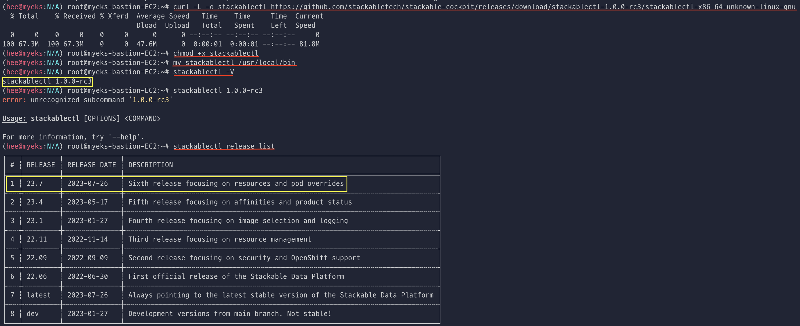 stackable을 사용하기 위해 아래와 같이 작업을 진행했고, 우리가 사용할 release은 23.7로 최근에 업데이트 된 것으로 보인다.