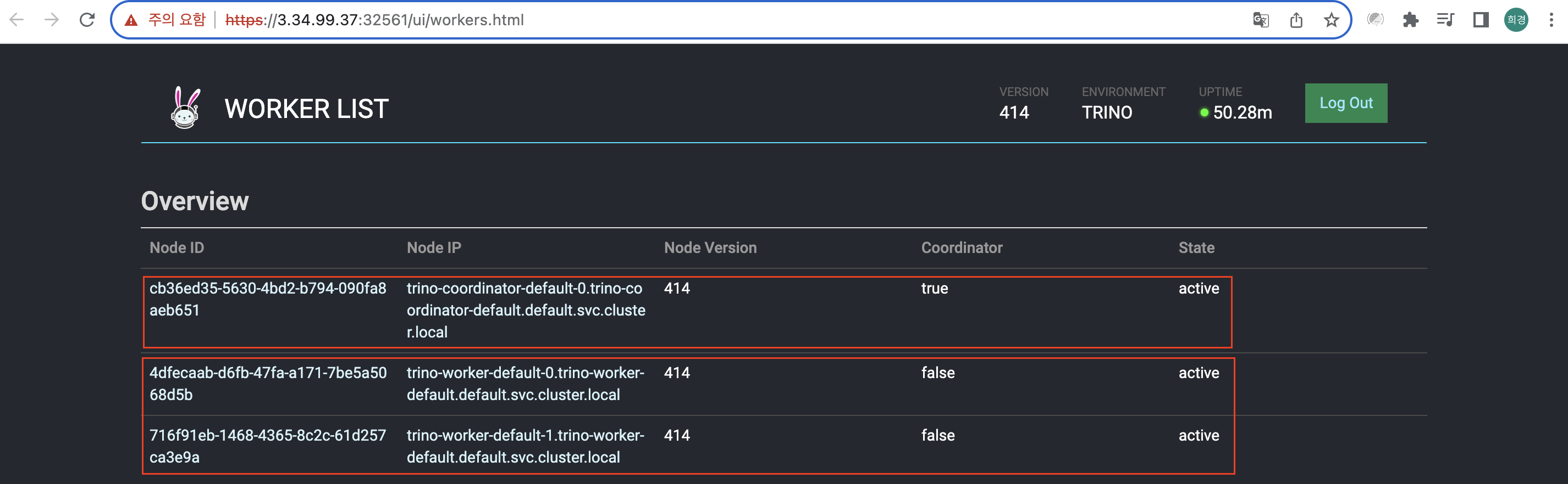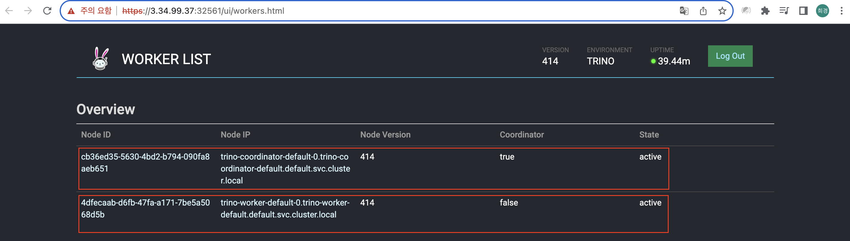 trino worker node는 지금 현재 1개인데, 2개로 증설해보았다.
