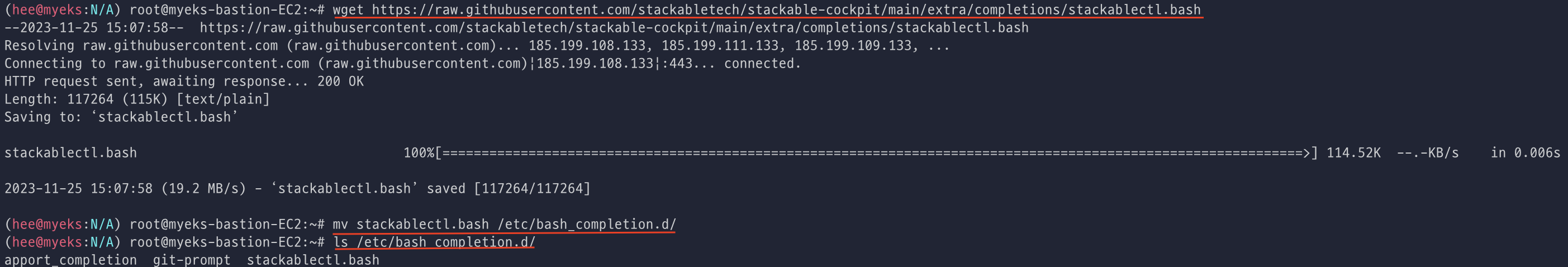 자동완성을 위한 bash 파일을 wget으로 다운받은 뒤에 /etc/bash_completion.d/ 아래로 bash 파일을 옮겼다.