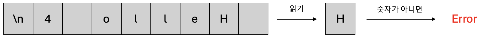 - scan가 남아있는 데이터(ello 4\n)를 다시 수행하면, 앞 글자를 또 읽어서 숫자가 아니면 에러를 뱉음.
