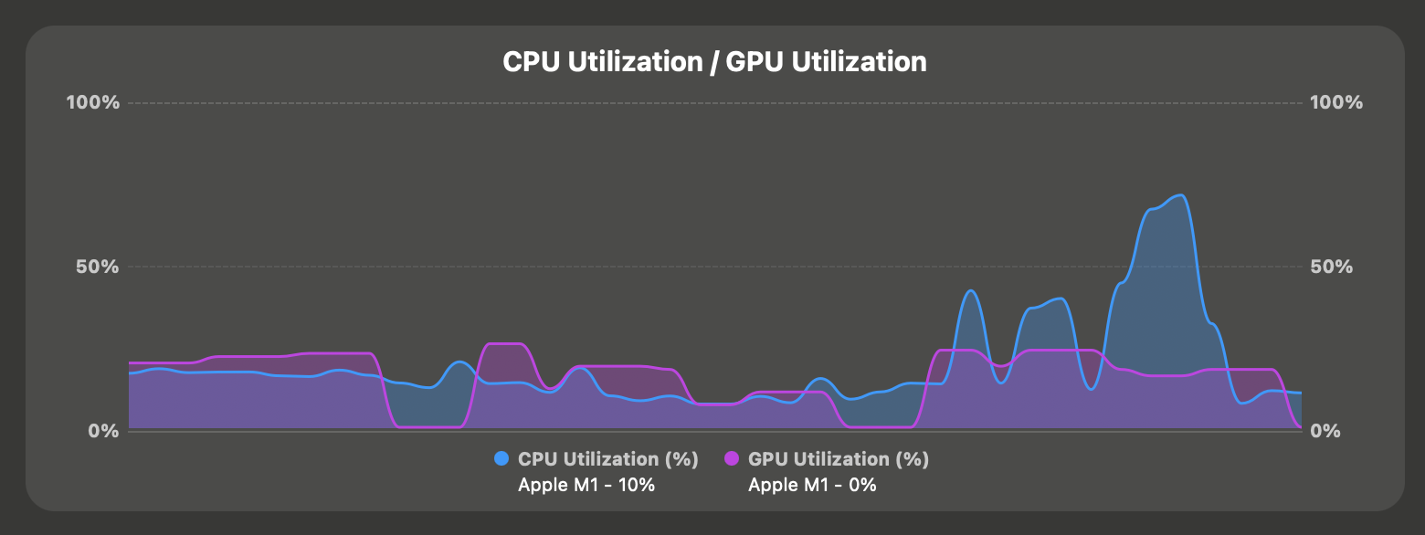 + 처음에 한 번만 돌리고 연달아 5-6번 실행하니 core util이 거의 60%이상까지 증가한 것을 볼 수 있음.
