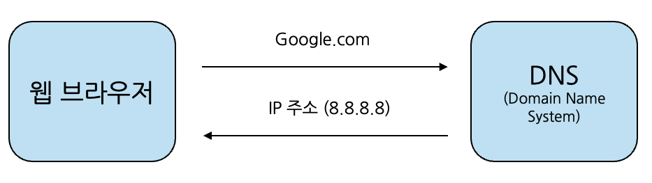 웹 브라우저는 도메인 네임 시스템(DNS)에 해당 도메인에 해당하는 IP 주소를 요청함.