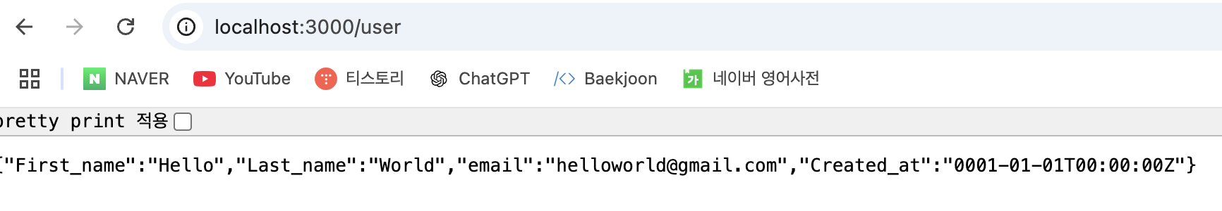 - user의 CreateAt을 현재 시간으로 변경함.