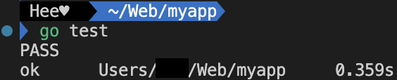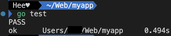 test 코드가 있는 디렉터리로 경로 이동 후 "go test" 실행