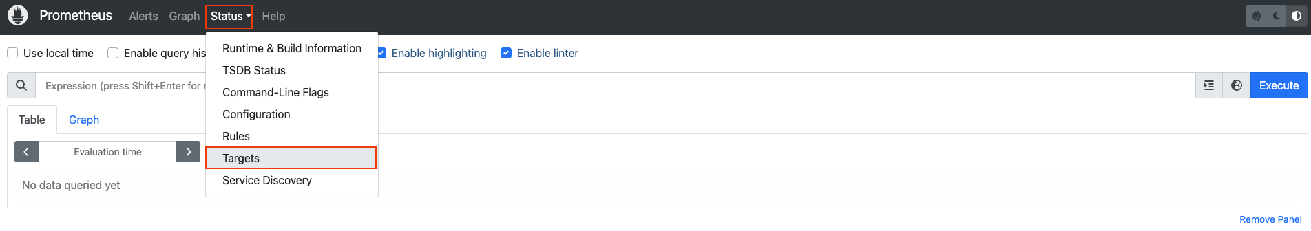 Status → Targets 경로로 가면 endpoint 상태와 Label을 확인할 수 있다.