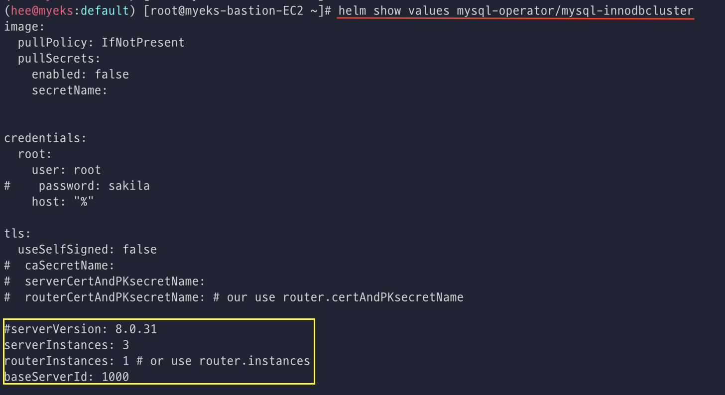 helm get values mycluster -n mysql-cluster
