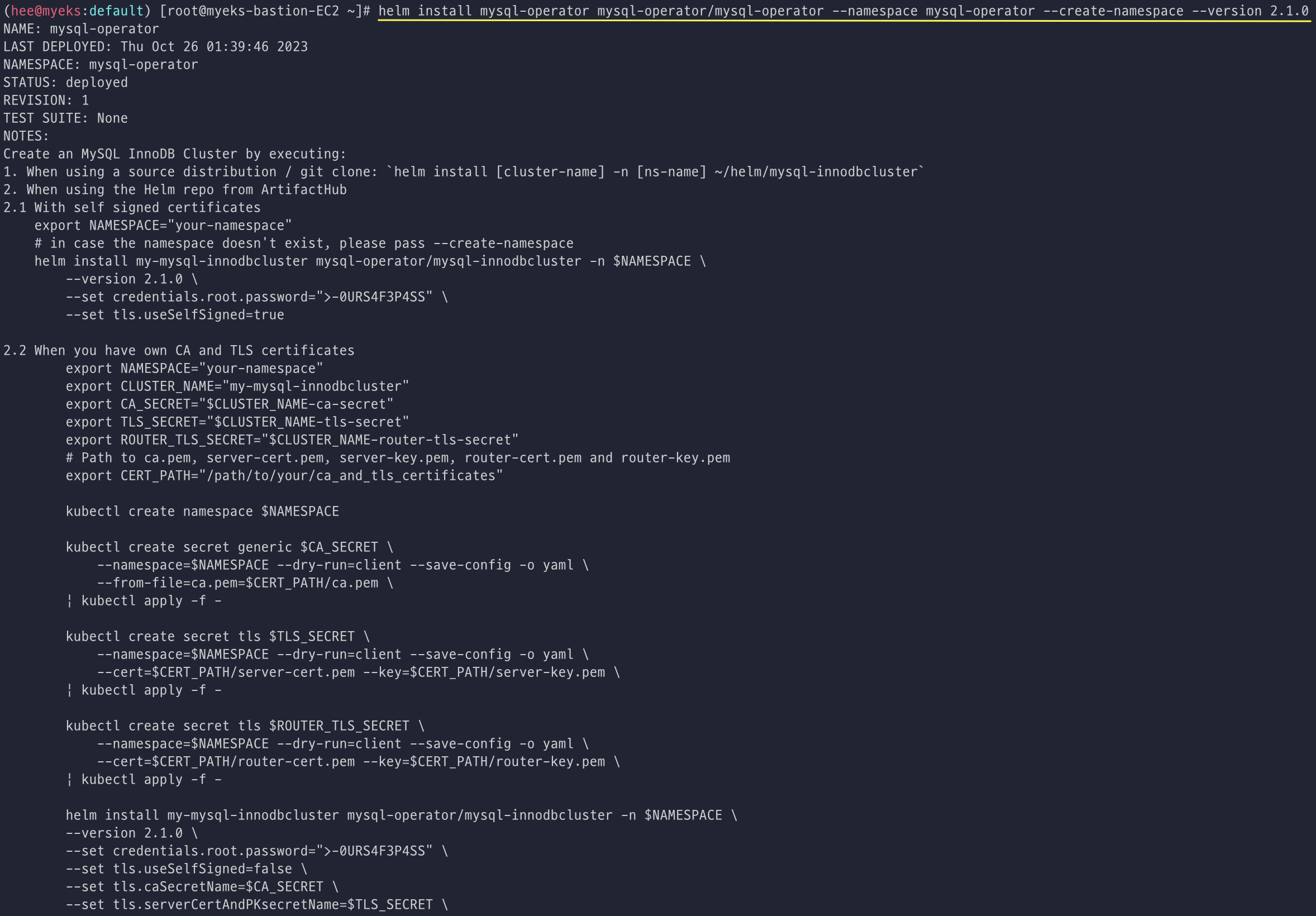 helm install mysql-operator mysql-operator/mysql-operator --namespace mysql-operator --create-namespace --version 2.1.0