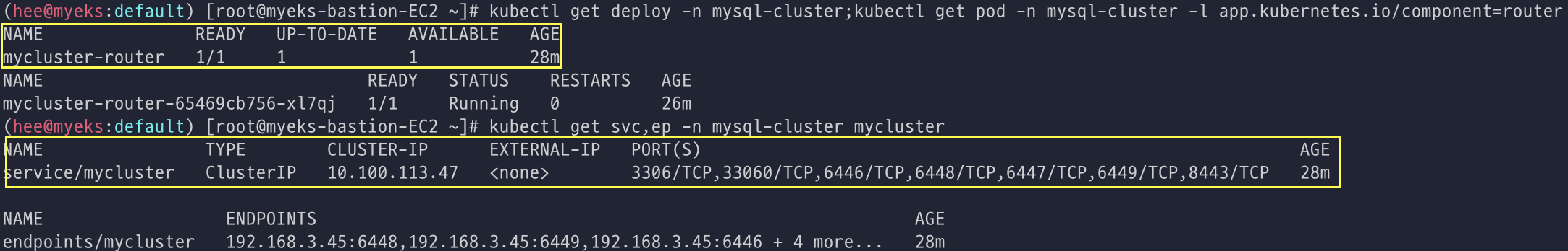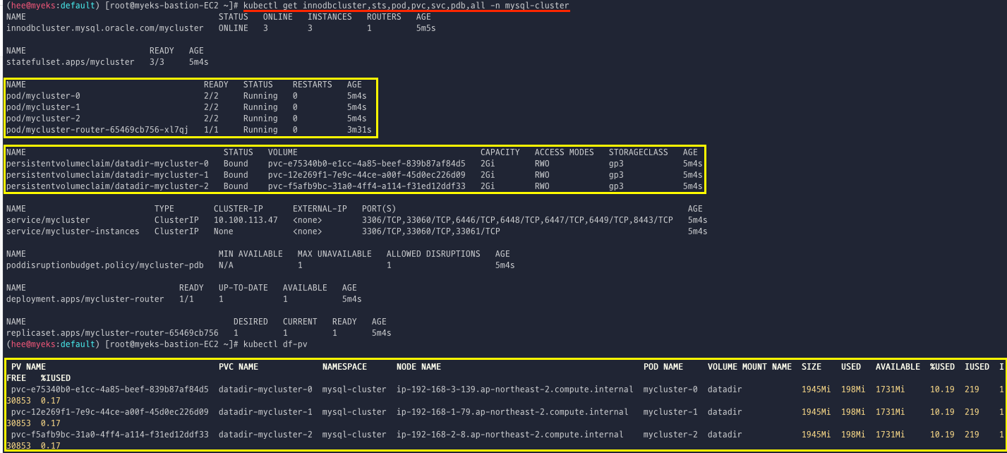 kubectl get innodbcluster,sts,pod,pvc,svc,pdb,all -n mysql-cluster