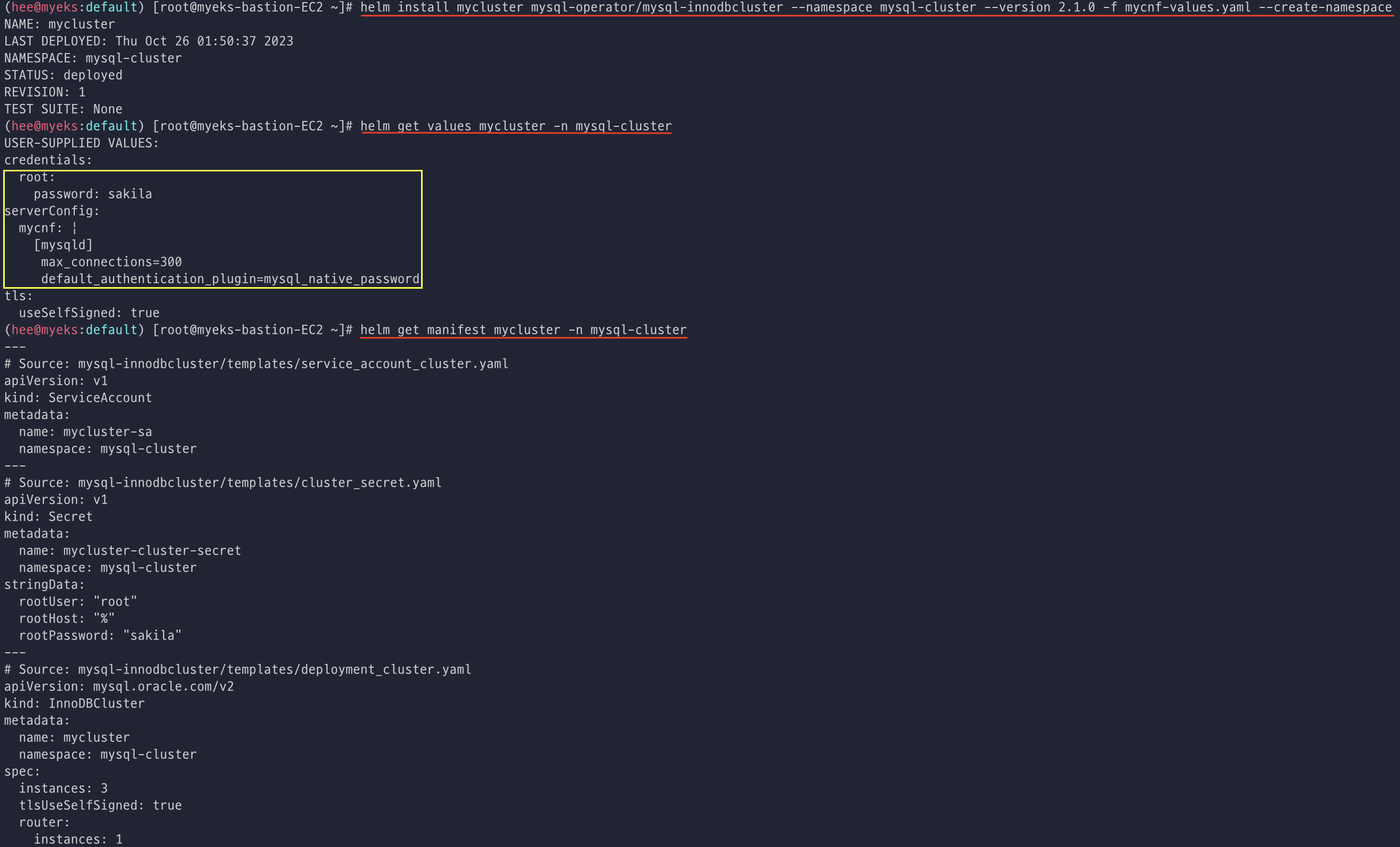 helm get manifest mycluster -n mysql-cluster