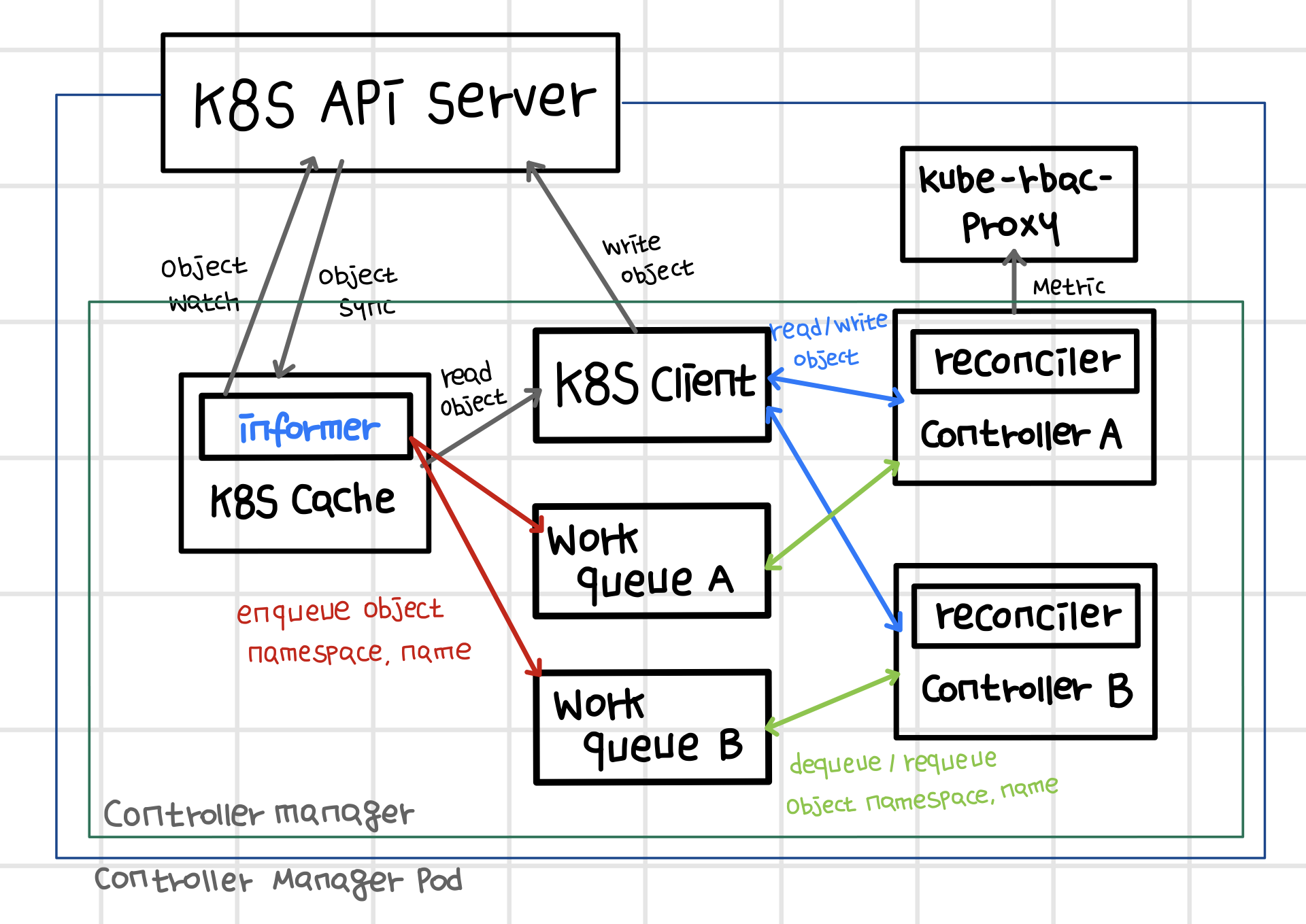 - 제어에 성공하였을 경우 해당 Object(resource)의 정보를 폐기하지만, 제어에 실패하였을 경우 제어를 성공할 때까지 work queue에 넣고 빼기를 반복