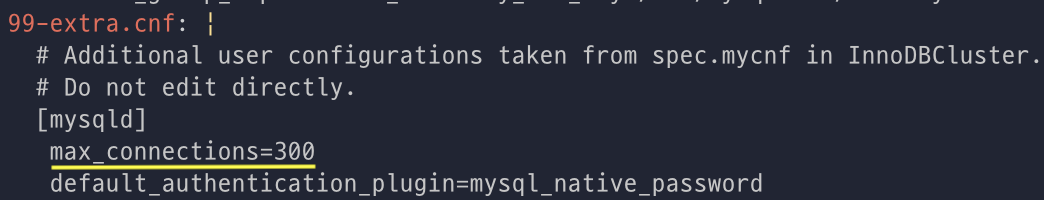 kubectl get configmap -n mysql-cluster mycluster-initconf -o yaml | yh