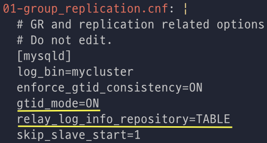 - 'gtid_mode=ON' = 그룹 복제 모드 사용을 위해서 GTID 활성화