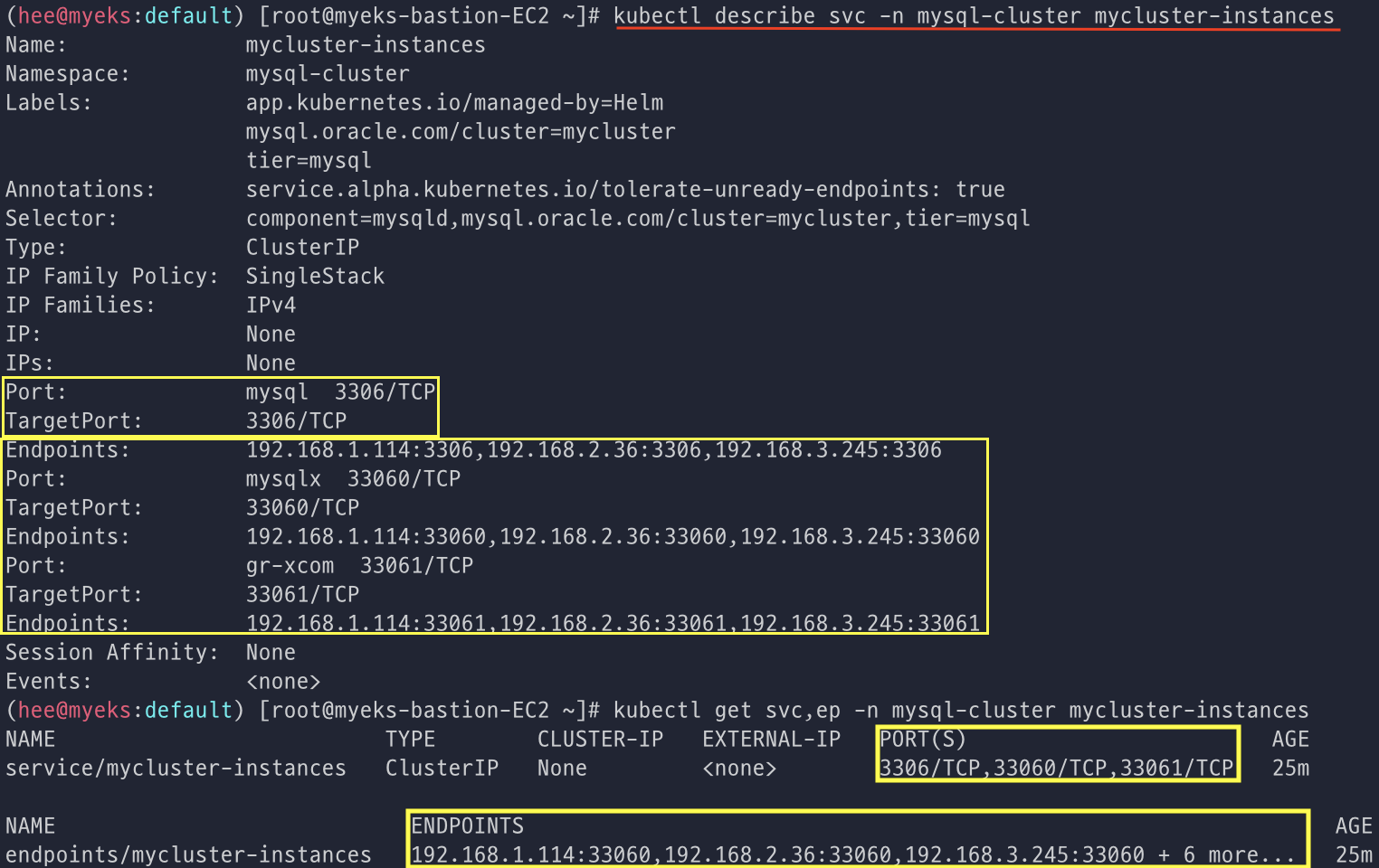 kubectl get InnoDBCluster -n mysql-cluster